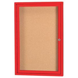 Enclosed Aluminum Frame Bulletin Boards with a Red Powder Coated Finish are made of custom extruded parts engineered to provide accurate, durable and handsome cabinets. All corners are neatly mitered and assembled with heavy duty reinforcements and fasteners. Lockable doors are mounted with a full length piano hinge and feature acrylic safety glass windows. The background is an attractive Natural Pebble Grain Cork tackable panel. Concealed mounting brackets are provided. Unit is Illuminated with UL listed fluorescent fixtures feature a light diffuser. A 3 wire electrical lead is provided. 18"W x 24"H. This is a 1 Door unit. 25.00 L. 19.00 W. 4.00 H.